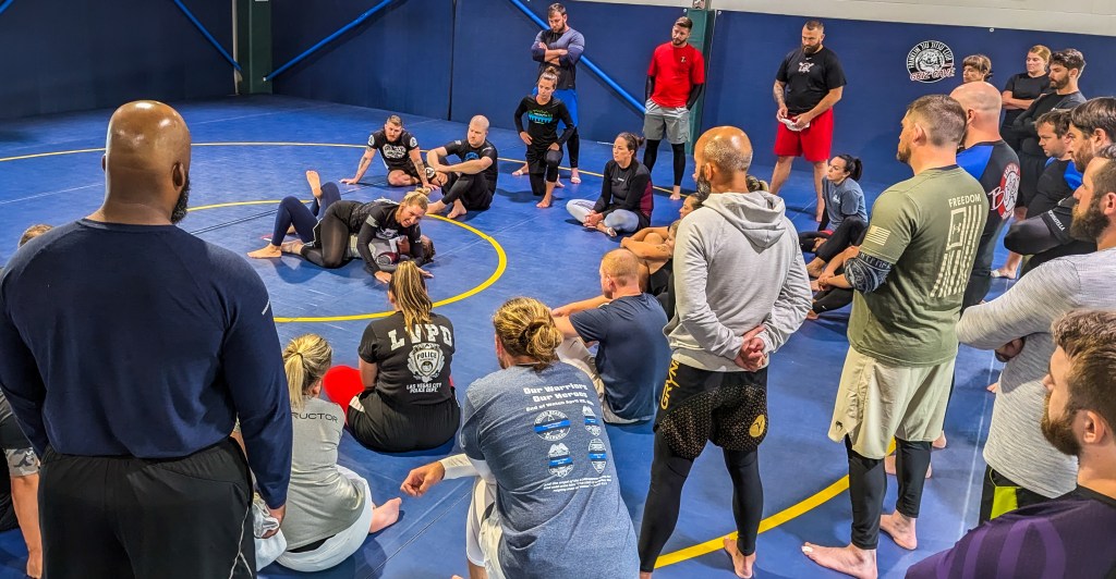 No. Our goal is to teach law enforcement officers techniques to achieve positional dominance during a physical altercation, even if they find themselves in a compromised position. This jiu-jitsu seminar is carefully crafted to immerse students in the martial art by teaching foundational jiu-jitsu techniques that enhance officer survivability, promote camaraderie and fellowship, and provide opportunities to network with like-minded individuals. Why? Because the FLEOA 111 Project wants law enforcement officers to begin, continue, and share their jiu-jitsu journey so officers can apply their acquired knowledge of biology, anatomy, and physics to solve a broad range of problems.